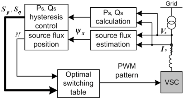 - 控制所施加的电压矢量, 可控制VSC磁链\(\psi_c\)的变化;
