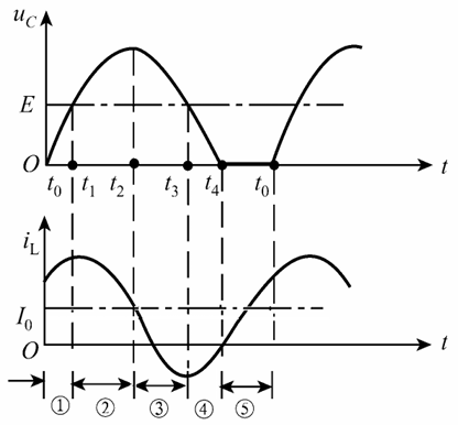 逆变器的功率开关器件应安 排在\(u_C\)过零时刻(\(t_4-t_0\))进行 开关状态切换,实现零电压软开关操作