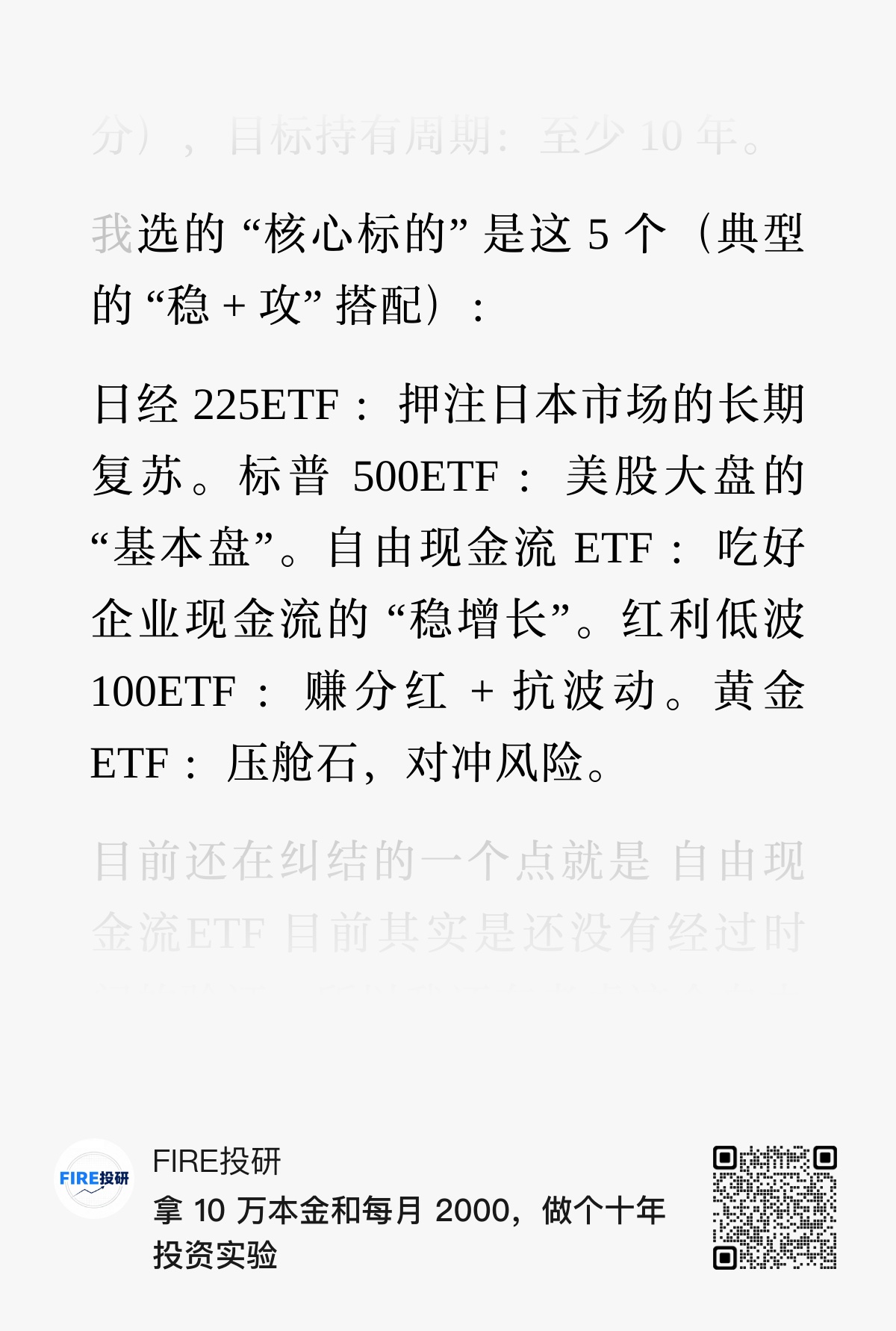 我的投资逻辑差不多,但是第一年我打算引入一定的债券来稳仓,如果26年底发现其他收益良好、债券收益较一般可能会考虑放弃。