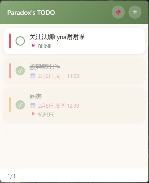 我跟着最前面的视频,做了一个ToDo软件:页面简洁、UI舒适、模型轻量化且满足我自己需求的个性化ToDo(因为我没有在市面上找到不收费的、UI简洁的令我满意的ToDo)。一开始让它生成HTML网页用来测试,然后在此基础上不断更新我的要求并进行测试迭代——每次我都把新的要求反馈给CC,让它帮我修正。基本满意之后,就开始进行EXE的生成,我要求CC自己选择合适的运行环境进行软件开发,并帮我搞定运行环境、生成EXE压缩包,顺手再丢到了Github上面。