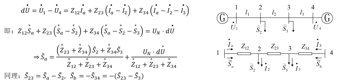 - 单电压级:任一点解环,用两端供电网求解,dU=0