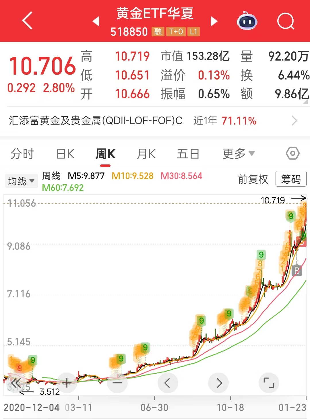 - 黄金由于一股在9r左右(大概是金价现价的百分之一),所以一手就是900多,鉴于目前还在建仓期所以仓位有点高。日后几个月内不会再投黄金,让它仓位控制在5-10%之间。