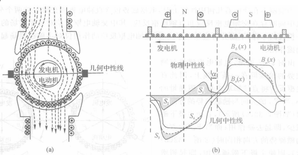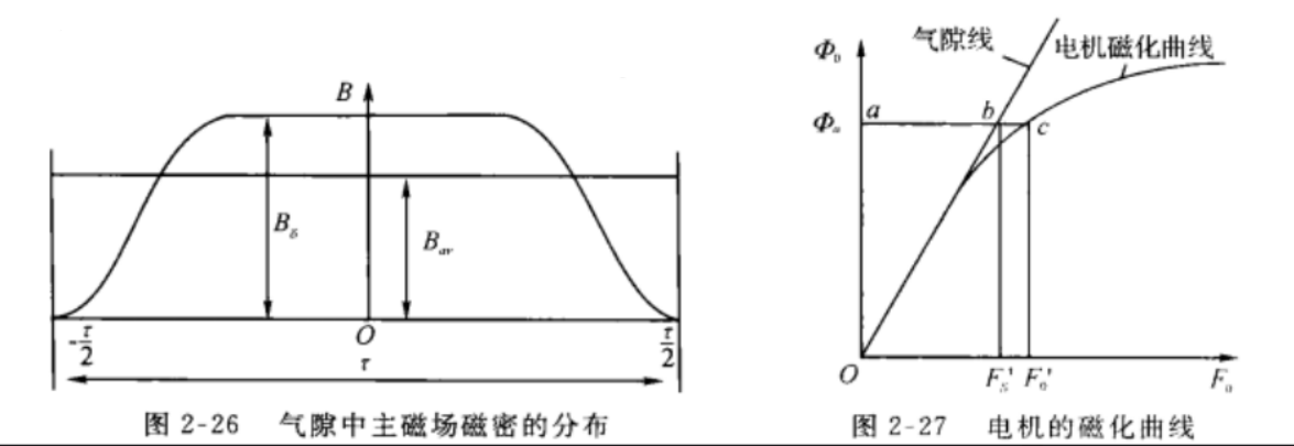 励磁磁场由主磁极的主磁通产生,因为存在严重的饱和,因此在主磁极覆盖范围内均水平,在气隙处迅速下降。