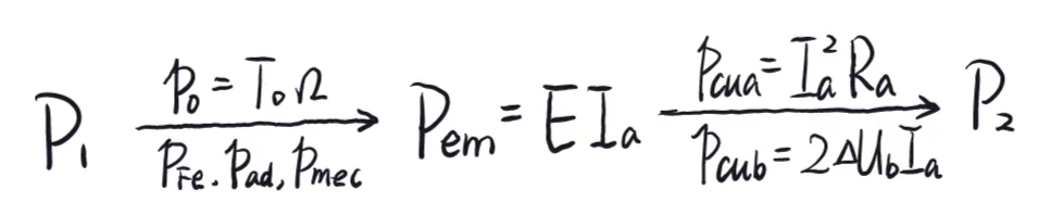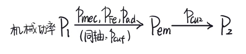 - 计算效率时,可变损耗为$p{cu1,cu2}$,不变损耗为$p{Fe,ad,mec}$,同样可变损耗=不变损耗时,取到效率的最大值