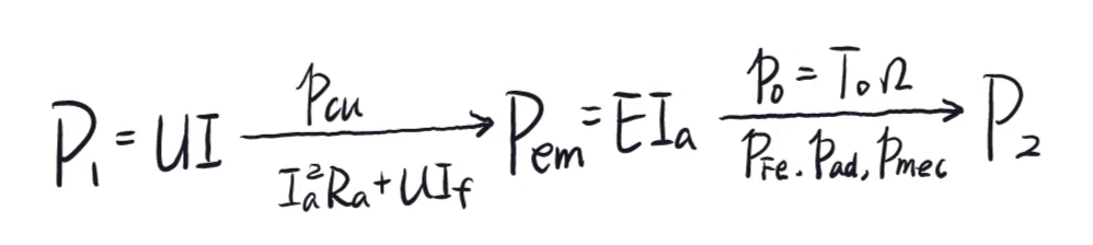 [注]:在并励发电机功率中也有$p_{cuf}$的铜耗,这里没标注